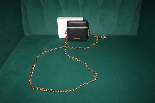 Chanel Lambskin Quilted Medium Cosmetic Case Dark Pink