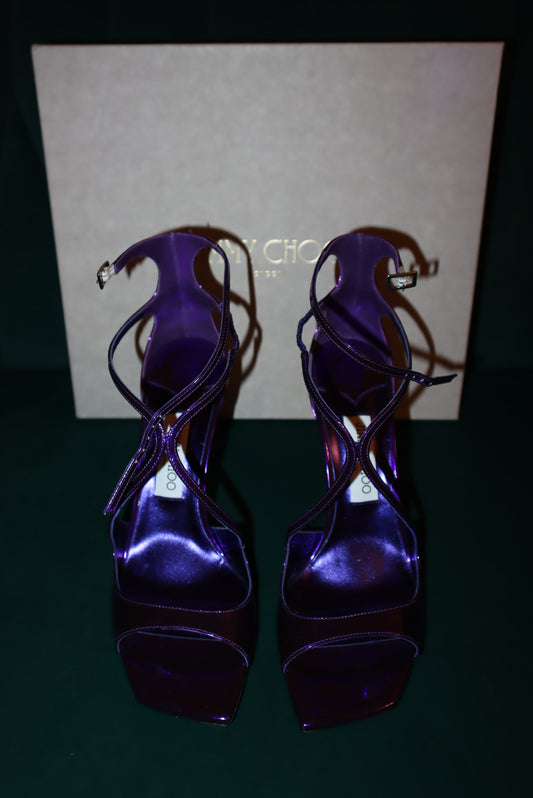 NEW Jimmy Choo Azia 95 Cassis Liquid Metal Leather Heeled Sandals