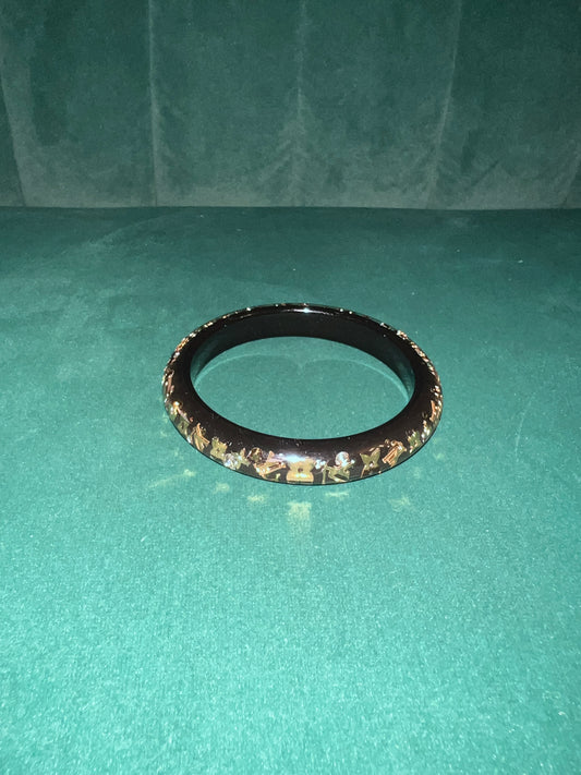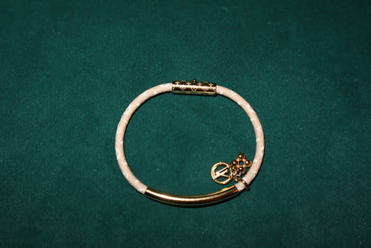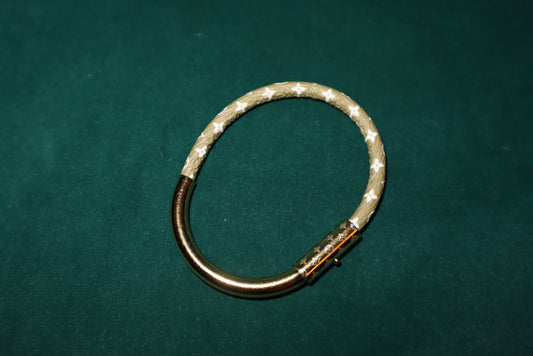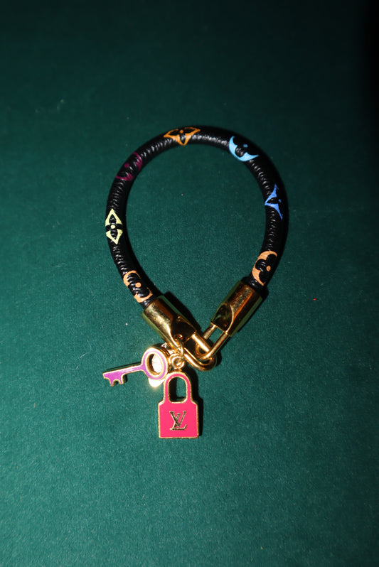 Louis Vuitton Luck It Black Monogram Canvas Gold Tone Charm Bracelet Pre-Loved