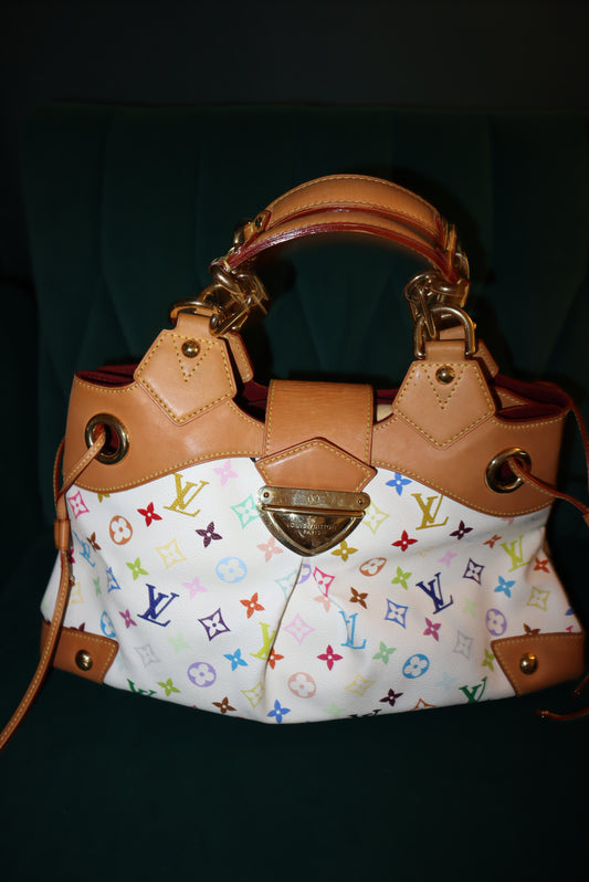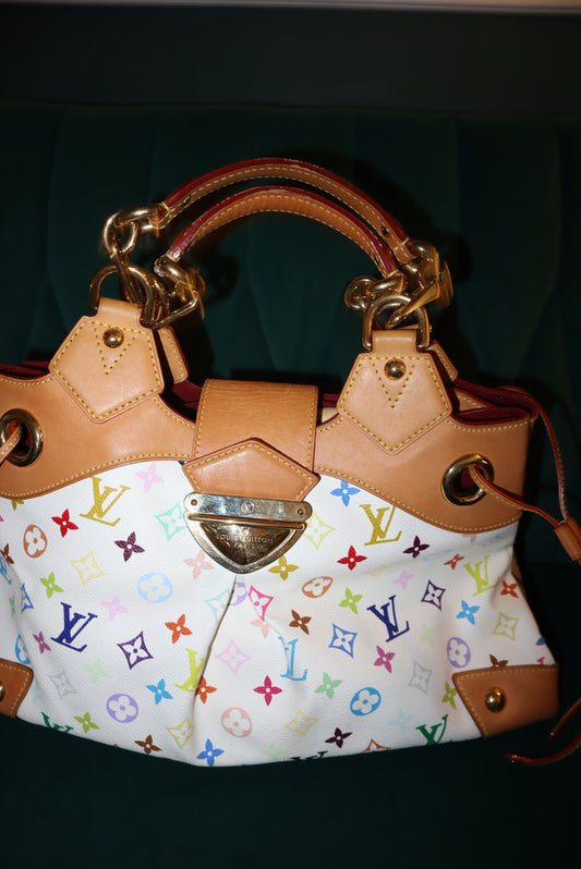 LOUIS VUITTON Monogram Multicolor Key Pouch White Litchi Pre-Loved Blue