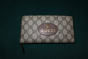 Gucci GG Supreme Monogram Neo Vintage Zip Around Wallet Beige Crop New Acero Pre-Loved