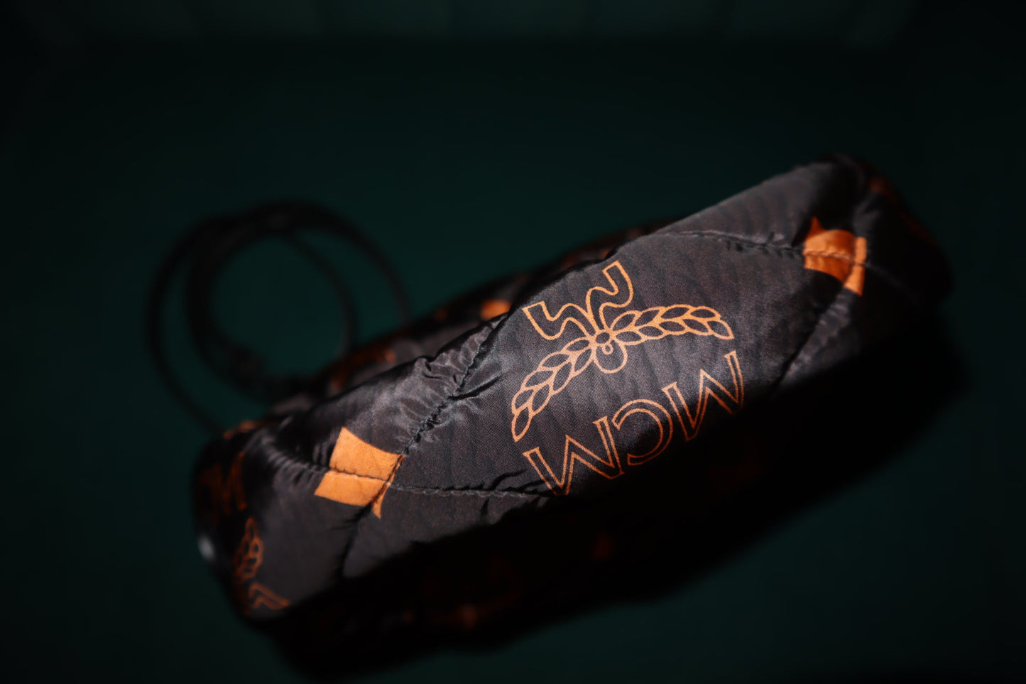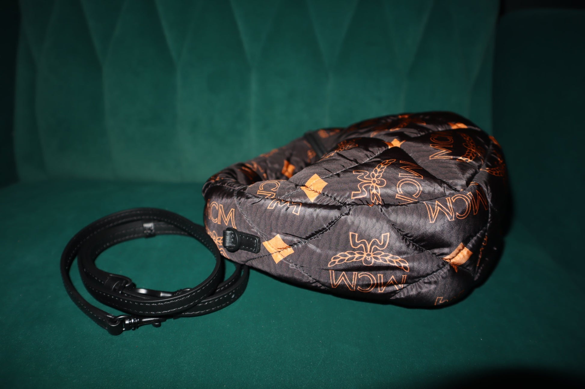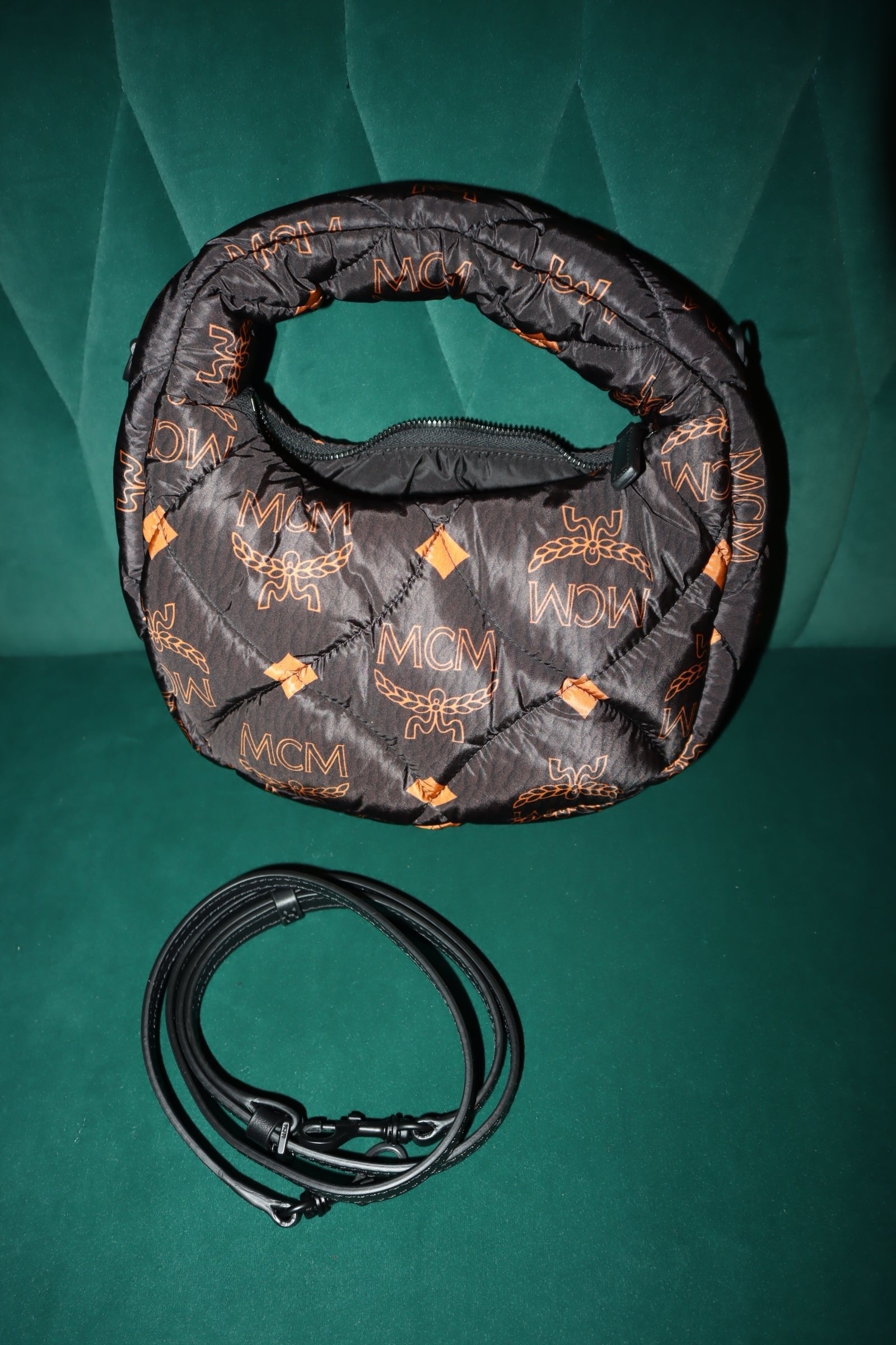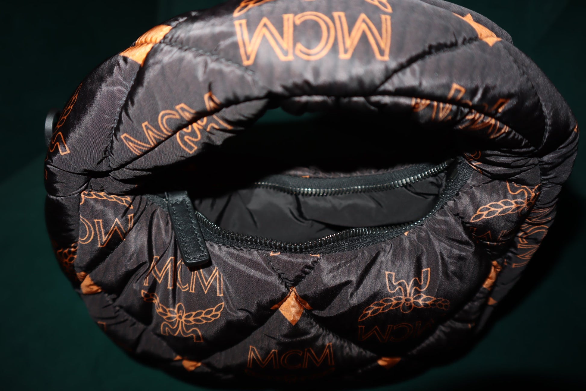 Bolso mini hobo MCM Maxi Visetos de nailon acolchado, color negro, usado, COMO nuevo