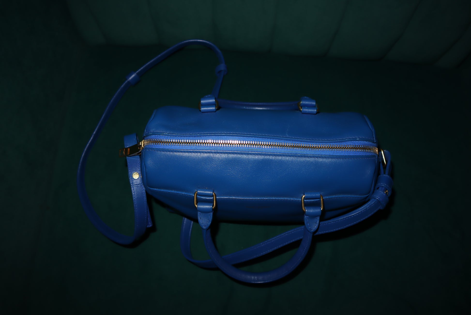 Elevate your handbag collection with this stunning Saint Laurent camera style bag in vivid cobalt blue leather. This luxe piece features a structured top-handle silhouette, zip-top closure, and an adjustable leather shoulder strap so you can carry it by hand or wear it crossbody for hands-free sophistication. Perfect for both casual and elevated occasions, from brunch in Sunrise to evenings in Miami.