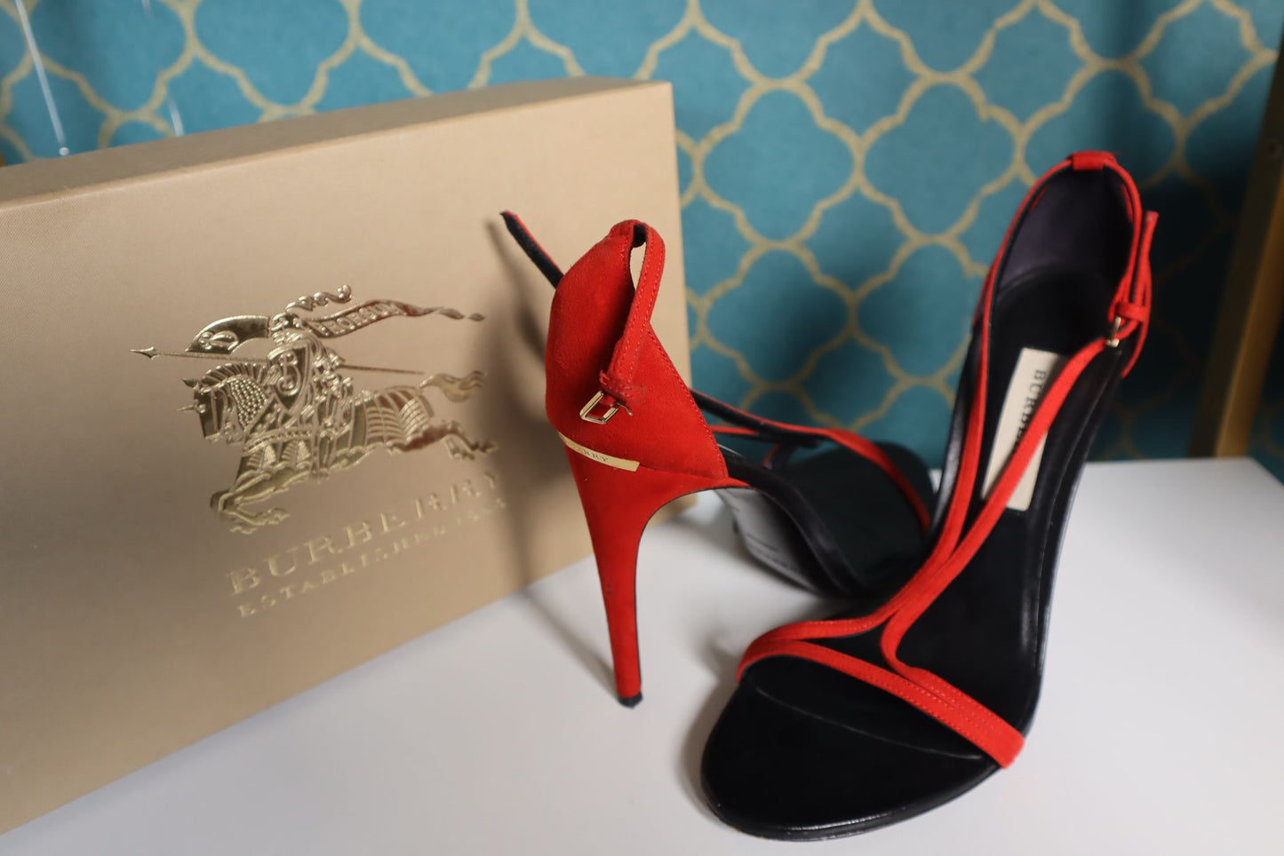 Pre-Owned Burberry Black/Red Leather Heels
