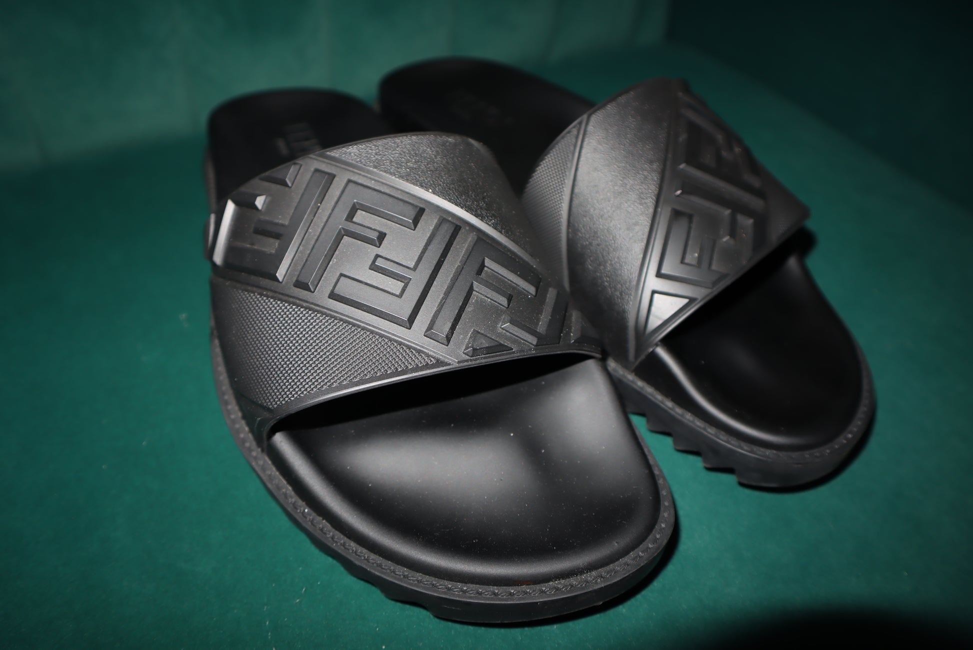FENDI FF-embossed slides combine luxury branding with casual comfort. Crafted with the iconic FF logo embossed on the strap, these slides offer a sophisticated edge to your everyday look. The cushioned footbed supports all-day wearability, while the durable sole ensures reliable traction. Perfect for effortlessly elevating relaxed outfits with designer flair.