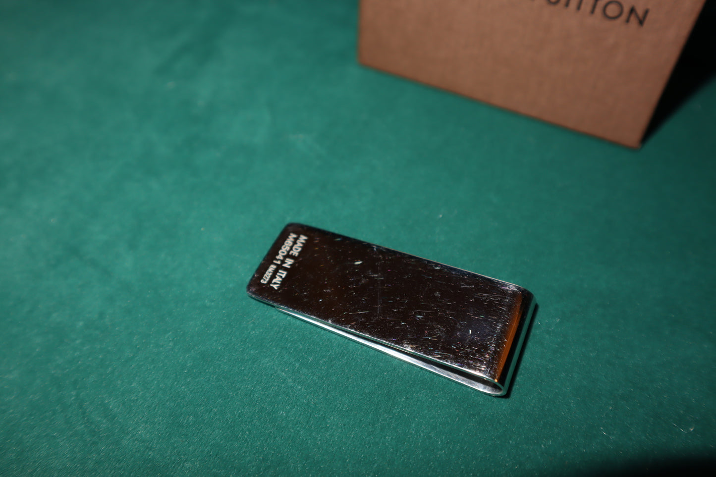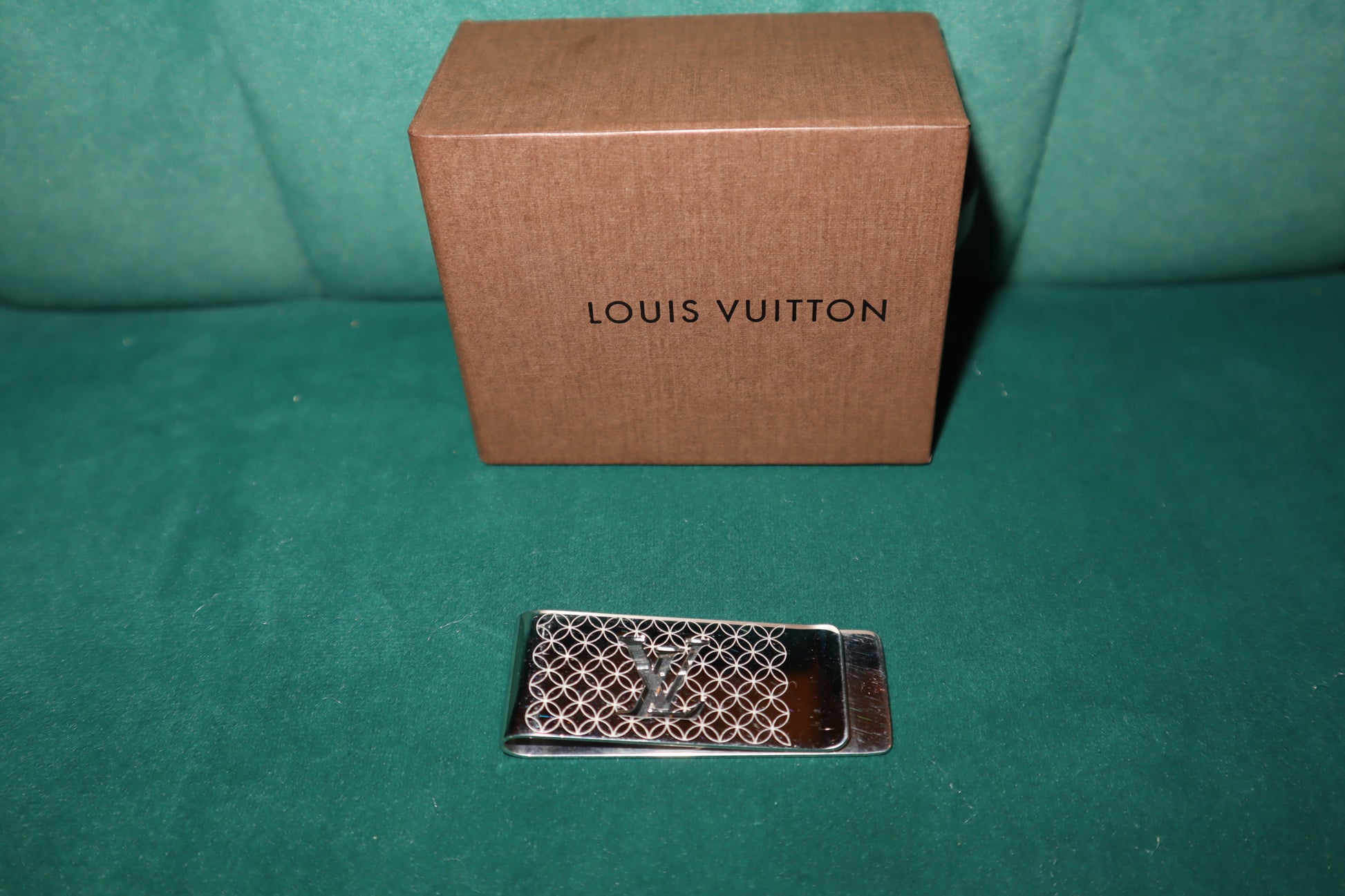 Expertly crafted from premium silver metal, the Louis Vuitton Money Clip offers secure and stylish storage for your cash. With its sleek design and iconic Louis Vuitton logo, this pre-loved accessory is perfect for adding a touch of luxury to your everyday essentials.