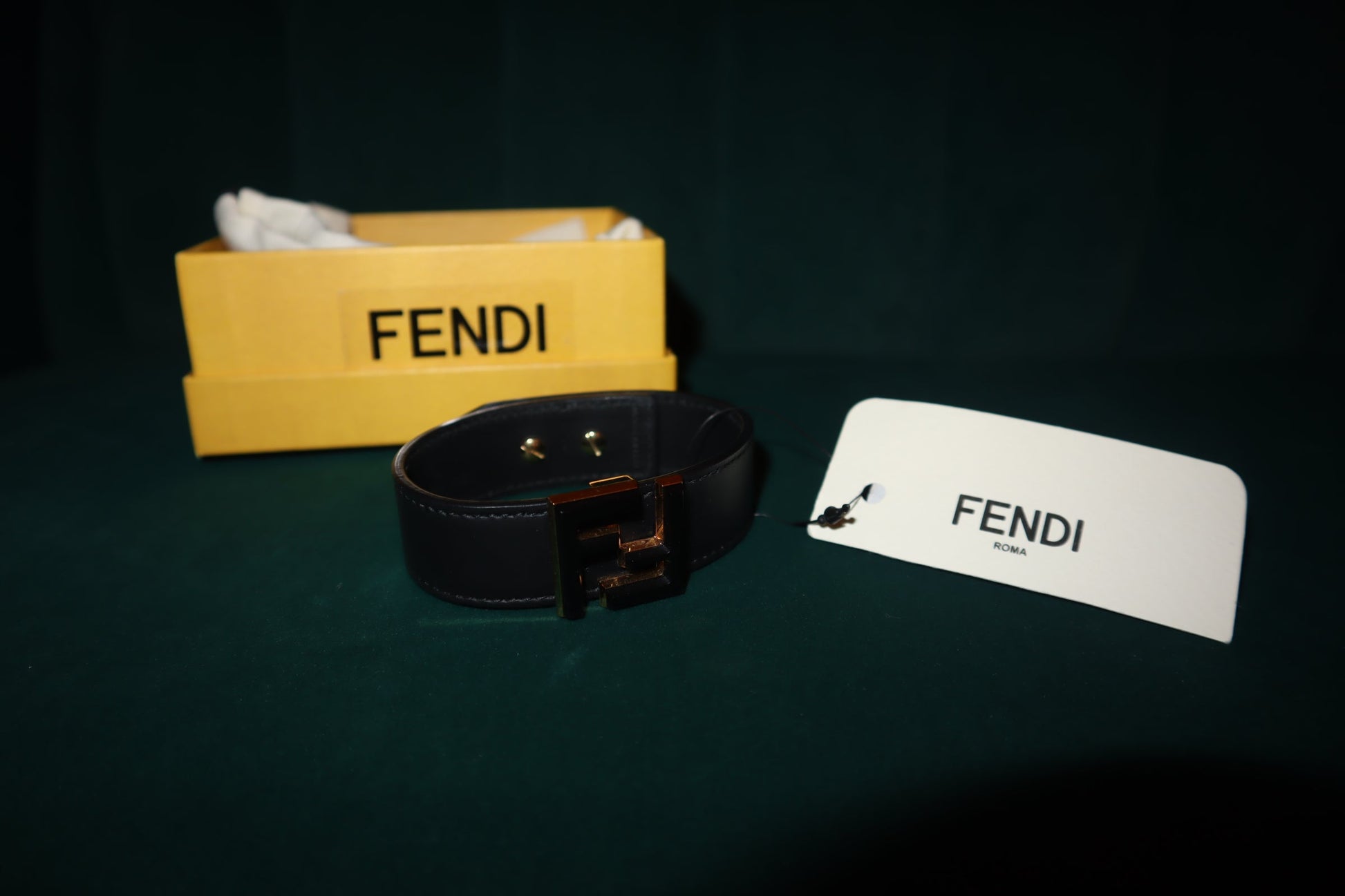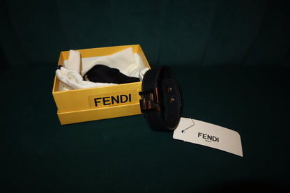 Add a touch of luxury to your outfit with this New FENDI Bracelet. Made from premium black leather and featuring the iconic FF logo, this bangle exudes elegance and sophistication. Elevate your style and make a statement with this beautiful accessory.