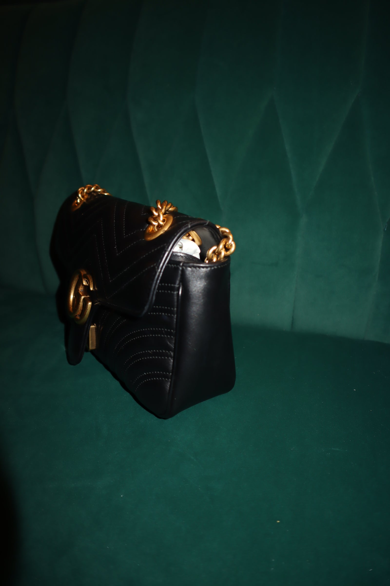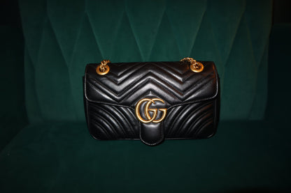 Step out in style with this Pre-Loved Gucci Marmont Bag in classic black. This bag is the perfect statement piece to elevate any outfit, featuring the iconic Marmont design. Made with high-quality materials and expert craftsmanship, it's a must-have for fashion lovers. Own a piece of luxury today!