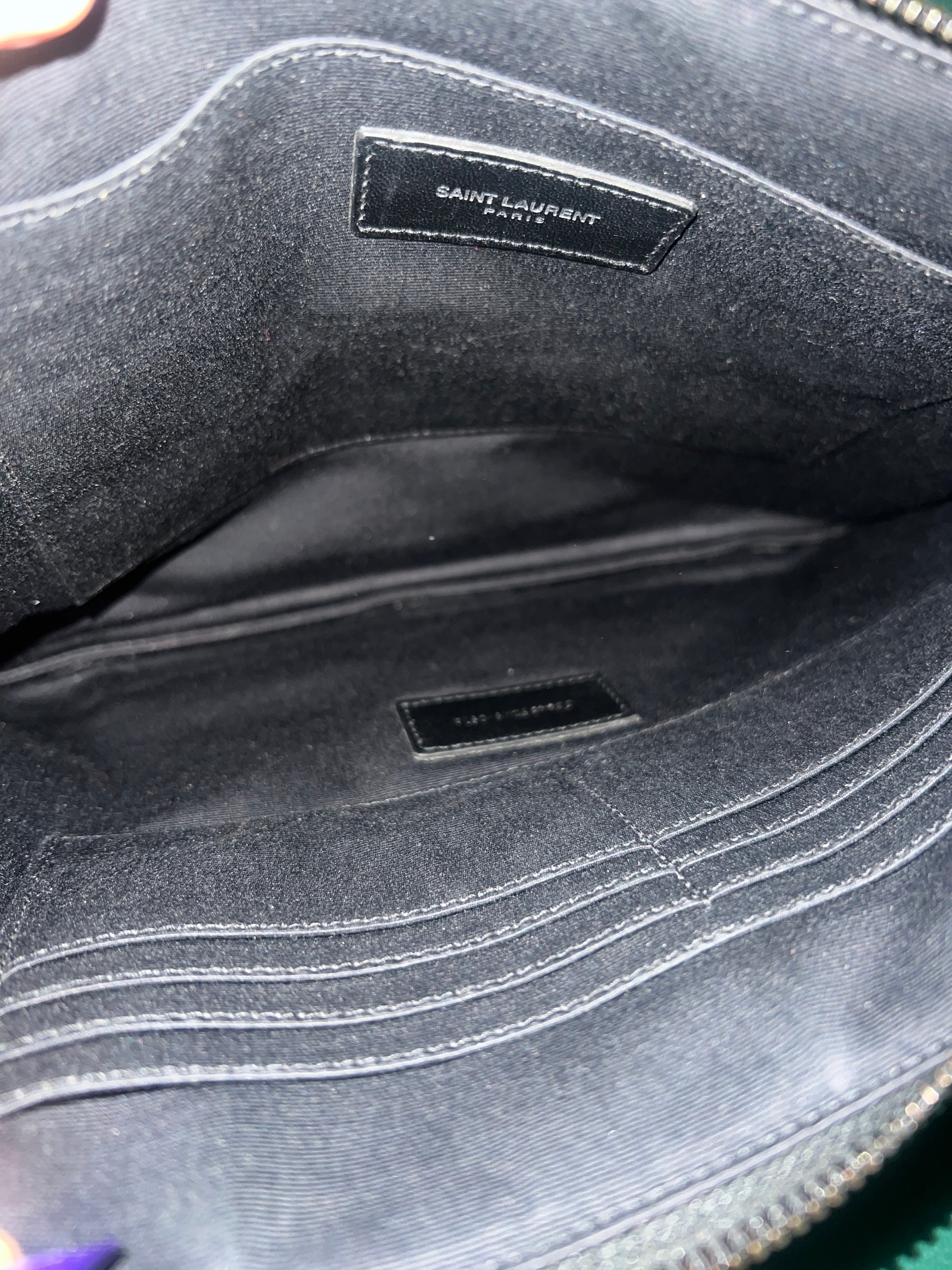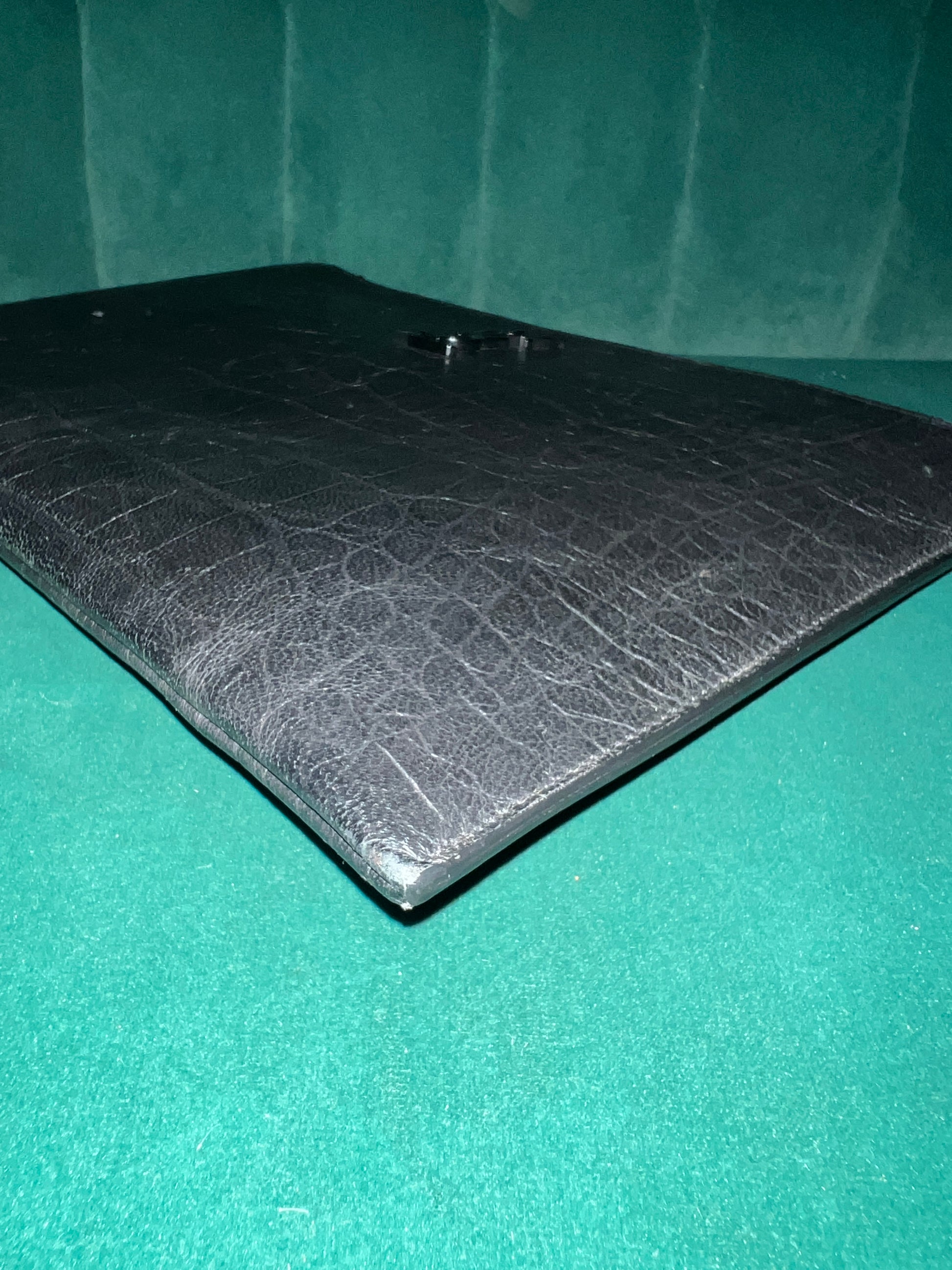 The Saint Laurent Calfskin Crocodile Embossed Monogram Document Holder in black exemplifies refined elegance and practicality. Lite corner flaws. Crafted from premium calfskin with a crocodile-embossed texture, this holder offers a sophisticated look while protecting your documents. Its sleek silhouette and signature monogram detail convey timeless luxury, making it ideal for professional settings where style meets function. Durable and lightweight, it ensures your essentials remain organized and accessible.